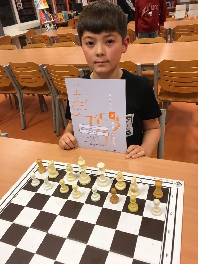 Op zaterdag 6 september werd in Gouda het eerste Grand Prix-toernooi van de RSB na de zomervakantie gehouden. Er waren weer heel wat denkhoofden naar Gouda gekomen. Ook van de Klim-Op waren er aardig wat aanwezig. Sommigen moesten er nog even inkomen, maar anderen lieten hun vorm al zien. In de hoogste groepen (vierkampen) waren aardig wat Klim-Oppers present. Zo won Siraz haar groep met 2 uit 3. Die score haalde Ziqing ook, maar hij werd op weerstandspunten derde, dat was jammer. Jonathan nam deel in de hoogste groep en dat was best zwaar. Hij kwam tot 0,5 uit 3. Ziyang scoorde 1,5 uit 3 en Jan Peter 1 uit 3. Ook in de zeskampen waren we aanwezig. Jason deed het heel goed en won de tweede prijs in zijn groep. Ediz eindigde op 3 uit 5 en dat was ook goed voor een tweede prijs. De andere Klim-Oppers deden mee in de achtkampen. Avery was in vorm, want met 6,5 uit 7 won hij zijn groep. Kina won met 4 uit 7 ook een beker in haar groep. Dat deed Michairo ook met dezelfde score.Karan kwam uit op 3 uit 7. Muyi eindigde op 2 uit 7 en Ariana met 1 uit 7 moet er nog inkomen. Prijswinnaars gefeliciteerd! En de anderen hebben wedstrijdervaring opgedaan en gaan de volgende keer voor een podiumplaats! Ouders weer bedankt voor het vervoer en de begeleiding!