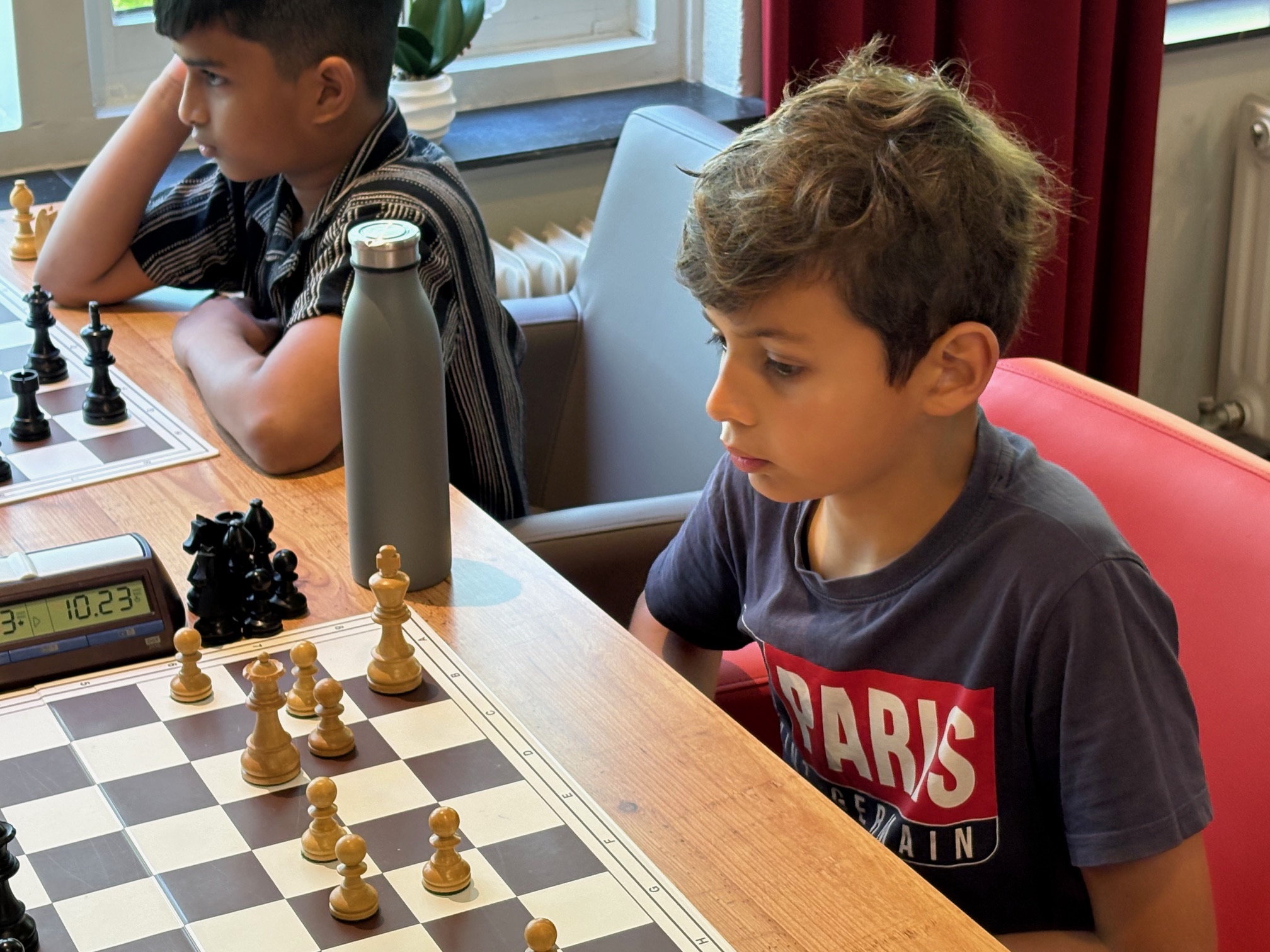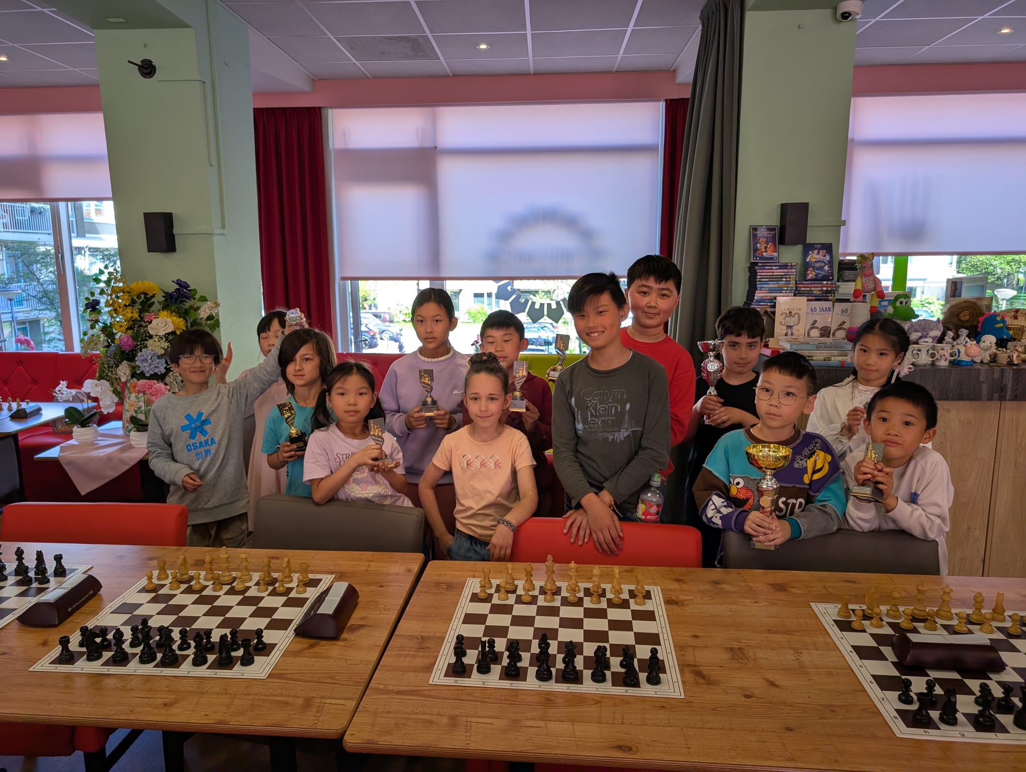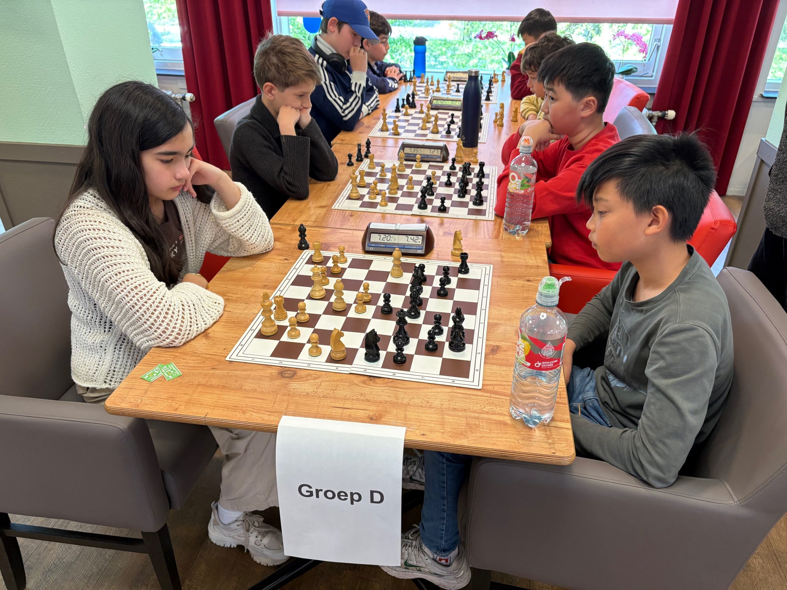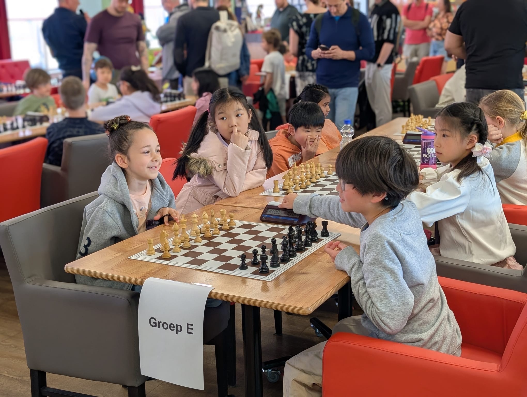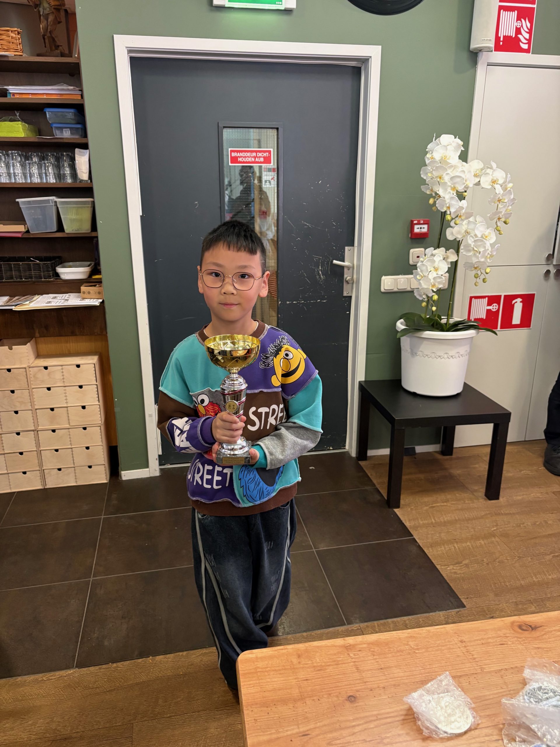 Op zaterdag 25 april werd in het Huis van de Wijk Arcadia het jeugdtoernooi van sv Erasmus gehouden. Er waren aardig wat Klim-Oppers aanwezig. Ze presteerden weer behoorlijk goed. In de hoogste groep (vierkamp) deden Ediz en Jonathan mee. Ze scoorden beiden 2,5 uit 3; hun onderlinge partij werd remise. Toen was een barrage nodig. Ook die eindigde in remise. De tweede barrage-partij werd door Jonathan gewonnen, zodat hij winnaar van het toernooi werd. Ediz werd mooi tweede. Gefeliciteerd, beiden! In de op een na hoogste groep (zeskamp) schaakten Kina en Aiwen. Kina scoorde 1,5 uit 5 en Aiwen 3,5 uit 5, waarmee Aiwen tweede werd. Gefeliciteerd, Aiwen. De andere Klim-Oppers kwamen uit in de achtkampen. Opvallend was het optreden van Jack. Met 7 uit 7 (!) won hij zeer overtuigend zijn groep. Ook Caleb (5 uit 7), Xinwen (4,5 uit 7), Jun Lin (5 uit 7) vielen in de prijzen. Yolanda won met haar score (4,5 uit7) een medaille. Gefeliciteerd, allen! Wim viel zelf niet in de prijzen, maar zijn neef, die bij hem logeert, deed dat wel! Simon, die op donderdag de lessen bij ons volgt, won een medaille. De andere Klim-Oppers, Ziyed, Omar, Ariana, Elina wonnen dit keer geen prijs, maar deden wel veel wedstrijdervaring op. Dat neem je mee naar het volgende toernooi! Ouders weer bedankt voor de begeleiding!